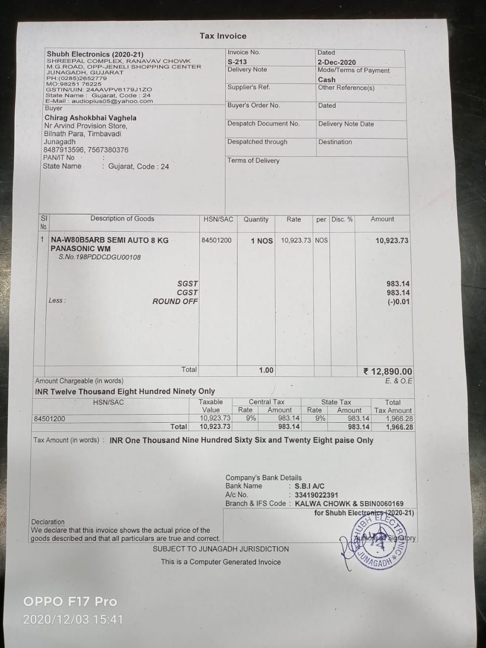 Invoive Number s-213
