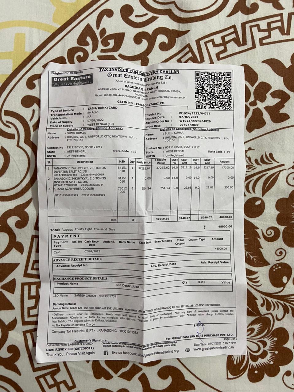 | Customer Name | Sunil Kumar |