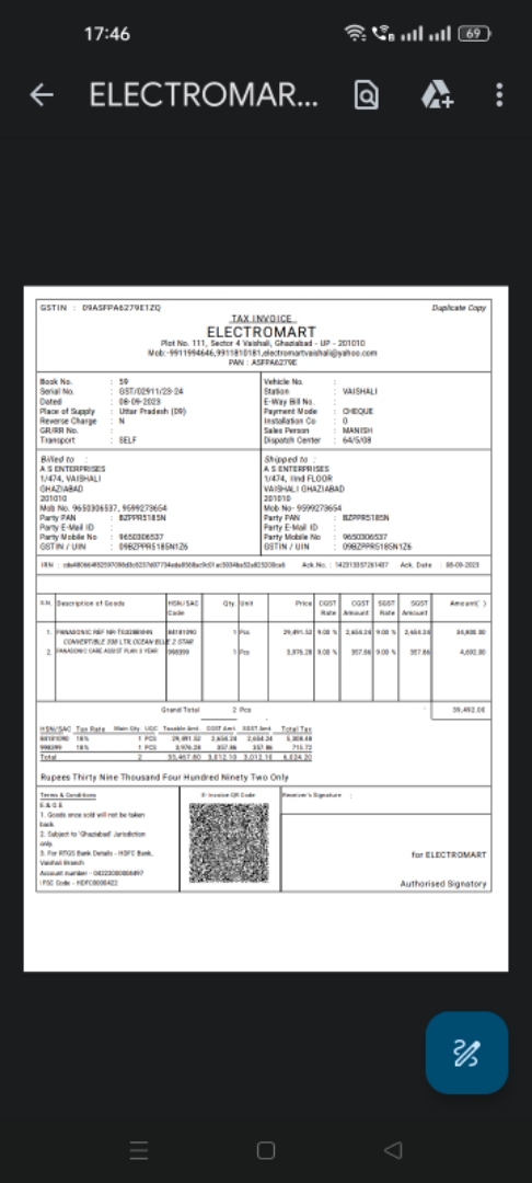 Invoive Number GST/02911/23-24