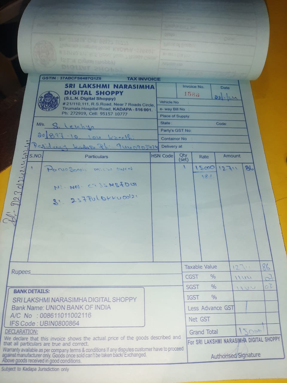 Address 20/897-10 104 keerthi apartment, Cuddapah, CUDDAPAH, ANDHRA PRADESH, INDIA - 516001