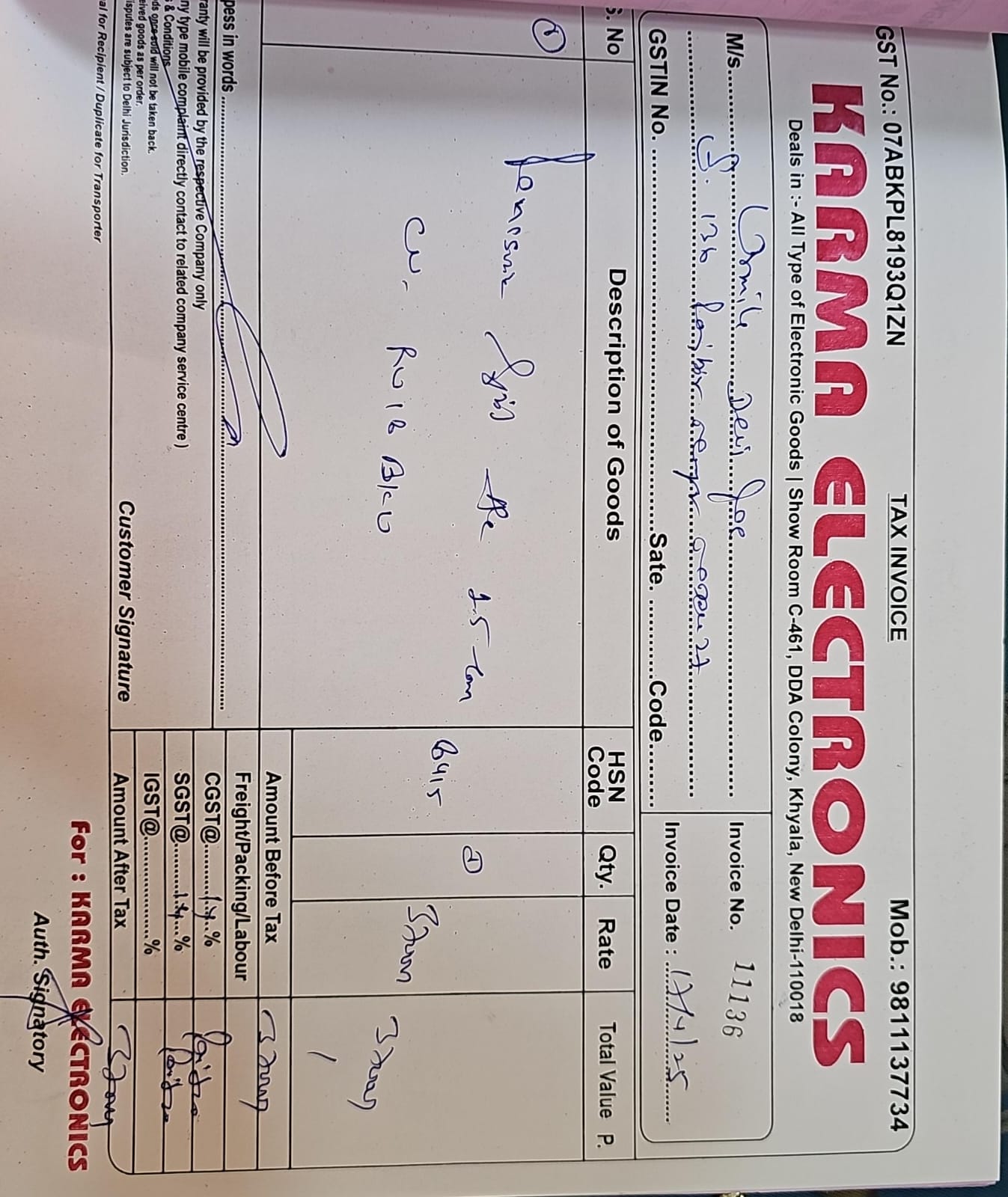 Invoive Number 11136