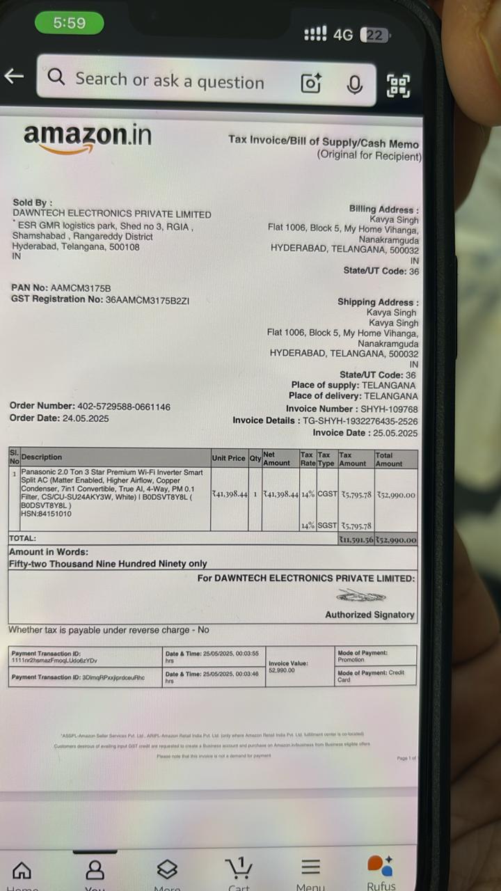 Address Flat 1006, Block 5, My Home Vihanga,Nanakramguda,HYDERABAD-500032,TELANGANA,IN, Gachibowli S.O, HYDERABAD, TELANGANA, INDIA - 500032